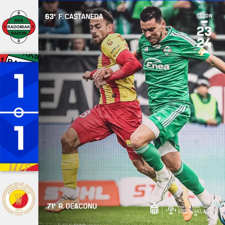 拉多姆与凯尔采的德比战在本轮打响。第63分钟,卡斯塔涅达扣过防守球员打门得手,为主队首开纪录。第71分钟,德亚科努多人包夹下破门,帮助客队扳平比分。