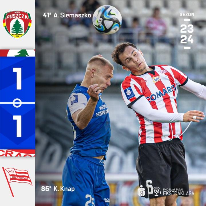 涅波沃米采遭遇了六轮不胜。第41分钟,谢马什科吊射为主队取得领先。第81分钟,斯科夫高为克拉科维亚破门,但因越位被判无效。第85分钟,克纳普头球破门扳平比分。第89分钟,希米格莱夫斯基为克拉科维亚反超比分,但进球再次被吹,克拉科维亚错失绝杀机会。