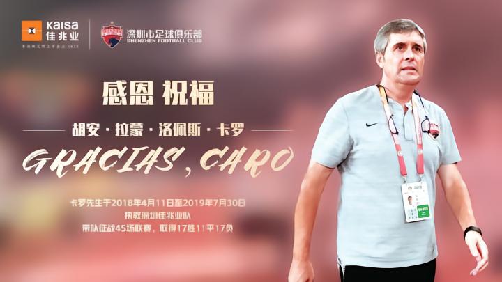 经过友好协商,深圳市足球俱乐部与卡罗先生共同决定:即日起,卡罗先生及其教练组不再执教深圳佳兆业队。