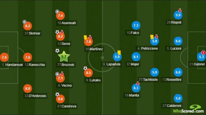 本场比赛是一场大胜,虽然对手莱切的防守兵力投入不足是主要原因,但也展现出了不少可喜之处:中锋卢卡库的巨大战术作用、中场布罗佐维奇的解放以及两侧边翼卫对场地宽度的利用,都是在战术方面值得称道的地方,而且球队整体的精神面貌非常好,展现出了一支有所追求的全新球队应该拥有的积极向上的态度。