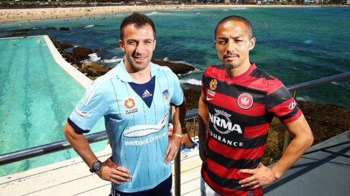 ▲效力于西悉尼流浪者时,小野伸二和悉尼FC的皮耶罗是澳甲的门面。