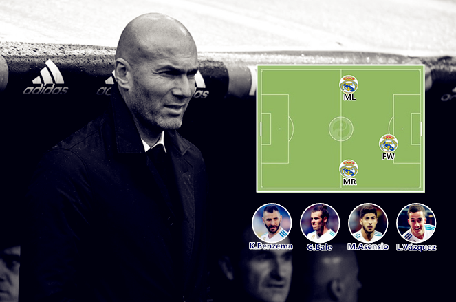 齐达内在上任之后迅速整合了安切洛蒂和贝尼特斯的遗产,前者打造的冠军阵容成为球队的基石,后者锻炼出的功能型新秀成为有益的补充,作为少帅“嫡系”的本泽马自然是实践美丽足球的重要棋子。除了在次回合国家德比中使用了防守型4141,齐达内在所有比赛中均坚持433阵型。在BBC组合成员先后受伤的情况下,齐达内提携巴斯克斯、赫塞和马约拉尔时也都是对位填坑,阵型和打法基本保持原状,少帅在过渡阶段力求稳定的战略思路进一步凸显出了BBC的重要性。