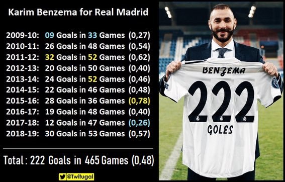 十年间经历了七位教练,成为了现役皇马球员中效力时间最久的一位,本泽马完美地诠释了一名符合现代足球发展潮流中锋的生存之道:不进球不要紧,帮助队友进球也是大功一件。里昂后期的本泽马身上有着罗尔纳多的影子,看惯了他身披白色球衫驰骋沙场的球迷们不敢相信,这位绰号“笨马”的中锋在来到伯纳乌之前曾经是风一般的杀手,他那惊人的速度和鬼魅般的变向是后卫们的梦魇,擅长突破和过人的本泽马单兵作战能力极强,其凭借一己之力羞辱曼联和巴萨的表现,引来了整个欧洲的瞩目。