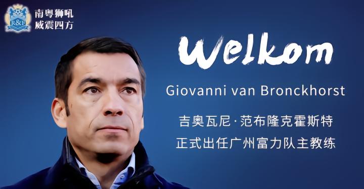 经我俱乐部与吉奥瓦尼-克里斯蒂安-范布隆克霍斯特(Giovanni Christiaan van Bronckhorst,粤语:云邦贺斯)先生友好协商达成一致,从即日起,范布隆克霍斯特先生正式出任广州富力主教练一职。