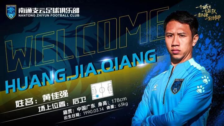 自即日起,球员黄佳强通过体检,确认加盟南通支云足球俱乐部。2020赛季,黄佳强将为南通而战!