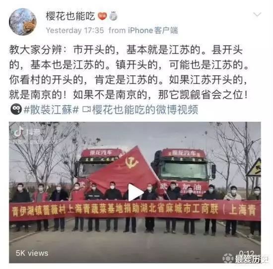 网友称,各省往湖北输送物资都是以省为单位,江苏是各个地级市,甚至县级市,还有村。