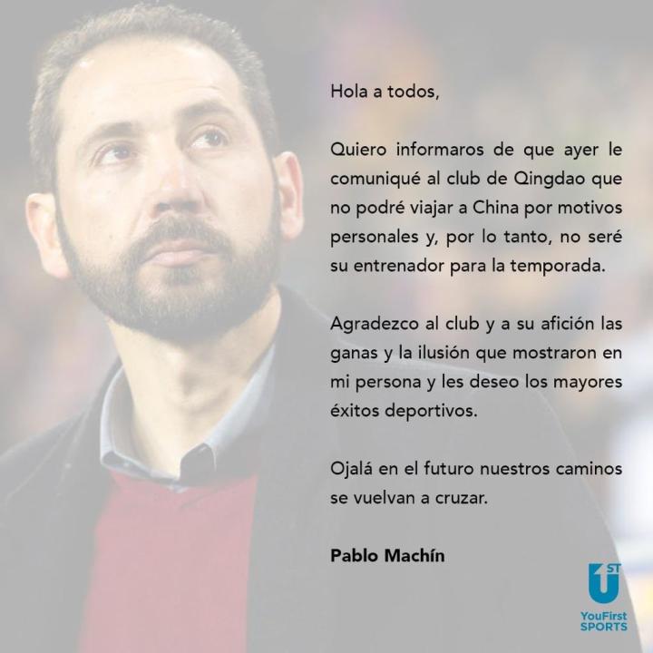 马钦:由于个人原因,我无法担任青岛黄海主教练omega172020-07-29 21:537月29日,此前官宣为青岛黄海新任主教练的马钦在社交媒体表示,由于个人原因,他无法担任青岛黄海主教练。马钦写道:“我想告诉大家,昨天我已告知俱乐部我由于个人原因无法前往中国,因此我将不会担任本赛季青岛的主教练。我感谢俱乐部和球迷对我的热情,祝他们取得好成绩。”此前据西班牙媒体零点电台的报道,西甲球队阿拉维斯想要在庆祝建队100周年之际签下马钦,阿拉维斯还希望马钦与青岛黄海和平分手,以此来免费签下他。展开更多
