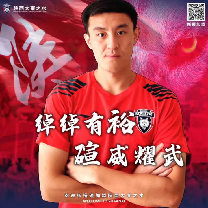 经友好协商,张裕碹正式加盟陕西长安竞技足球俱乐部。
