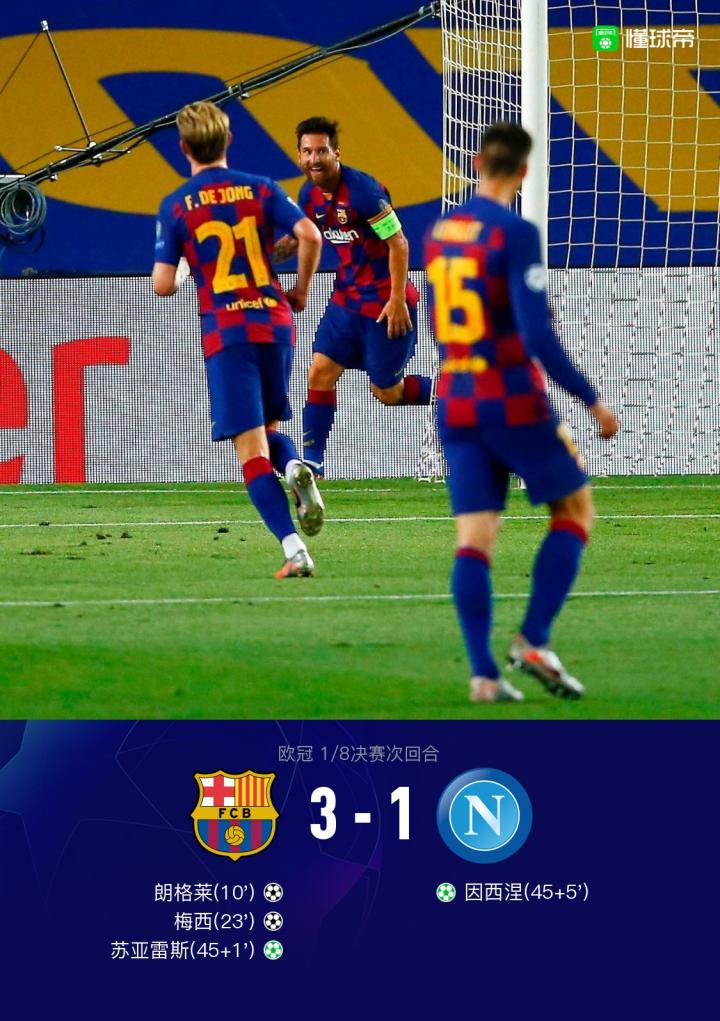 剑南春丨欧冠战报:巴萨总分4-2那不勒斯晋级,梅西精彩破门
