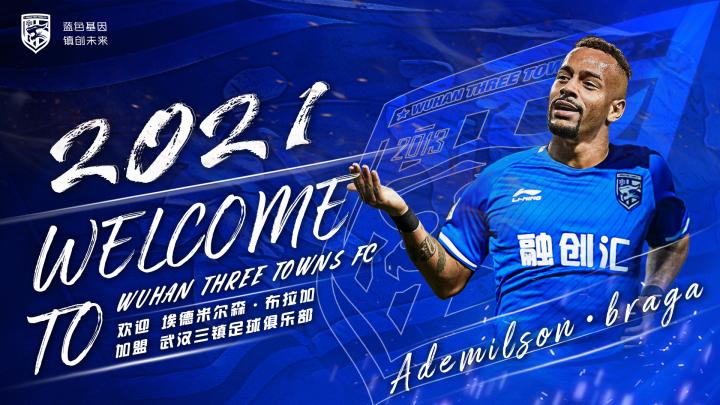 经与球员本人协商后达成一致,球员埃德米尔森·布拉加·比斯波·儒尼奥尔(Ademilson Braga Bispo Junior)以自由球员身份,正式加盟武汉三镇足球俱乐部。