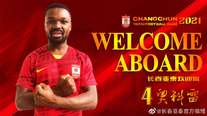长春亚泰官方宣布,前英超后卫奥科雷加盟球队。此前亚泰已经官宣外援儒尼奥尔以及埃里克加盟球队。