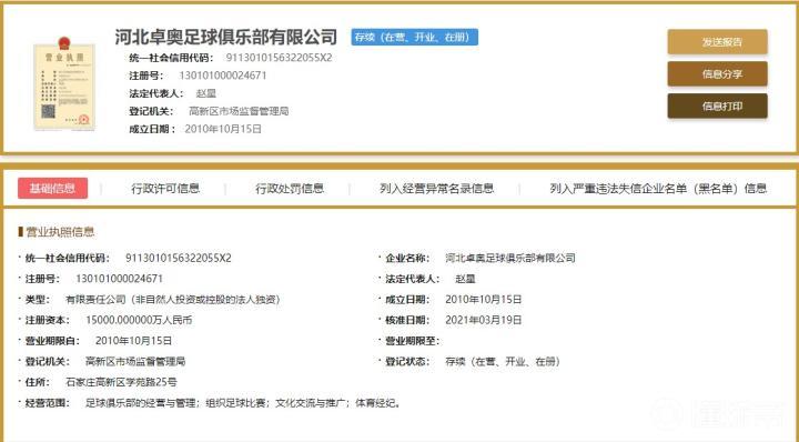 手续完成,河北奥利精英更名河北卓奥足球俱乐部心中日月哥 @懂球帝2021-03-23 15:28根据国家企业信用信息公示系统显示,中乙球队河北奥利精英已正式更名为河北卓奥足球俱乐部。此前,河北奥利精英足球俱乐部股东精英集团有限公司将持有的俱乐部40%股权、自然人徐弢将持有的俱乐部5%股权转让至中福万家(北京)进出口有限公司。转让后,中福万家(北京)进出口有限公司持有俱乐部100%股权,俱乐部法定代表人为赵星。展开更多