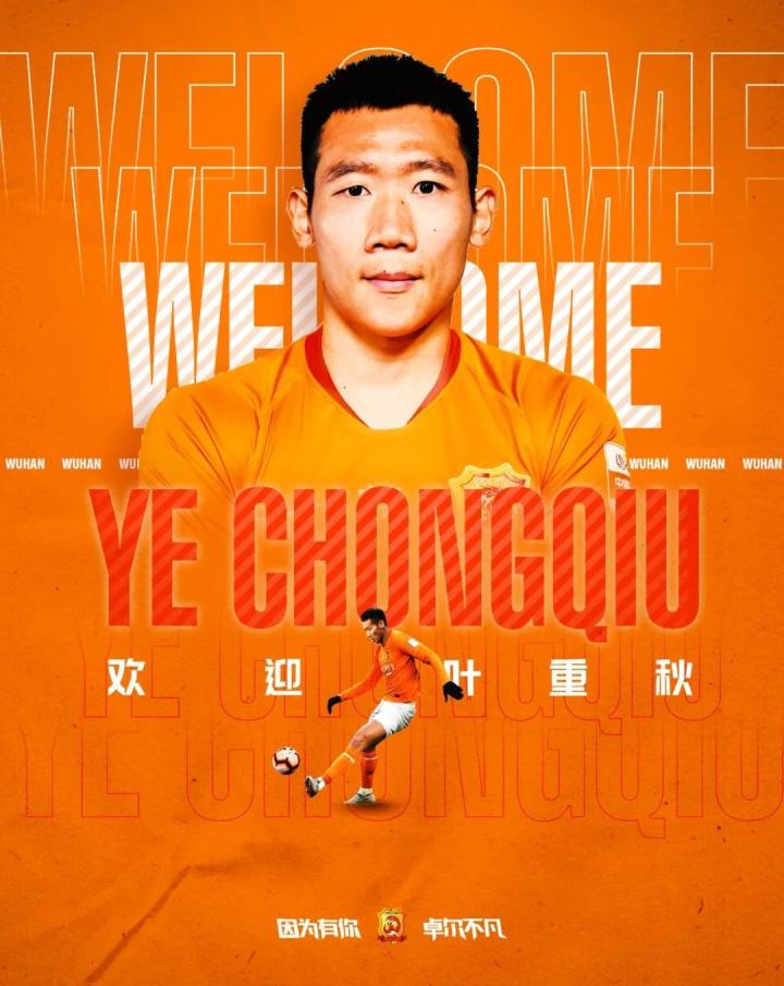 武汉足球俱乐部官方宣布,签下前江苏队中场叶重秋。