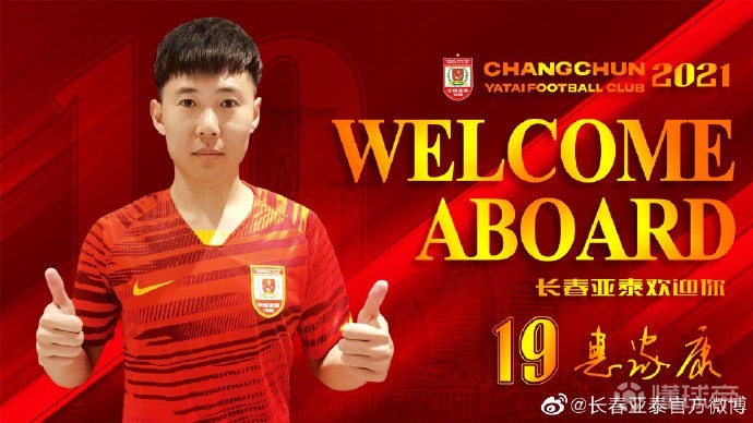 长春亚泰官方:惠家康、张宇峰、孙沁涵三名球员加盟球队