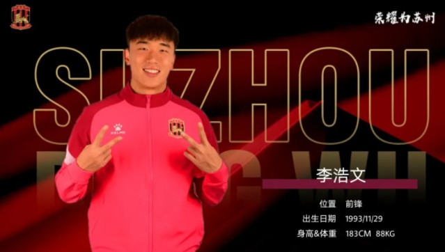 李浩文生于1993年,身高183cm,体重88kg,司职前锋。2017和2020赛季从上海海港俱乐部租借至苏州东吴足球俱乐部,表现优异,两赛季共为球队攻入9球。