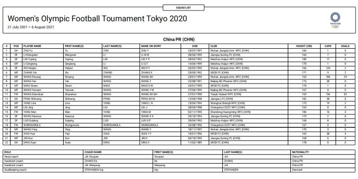 7月7日,国际足联公布了本届东京奥运会所有女足队伍的大名单。中国队方面,王霜领衔名单,娄佳慧等球员落选,而唐佳丽因为伤病未愈未能进入大名单。
