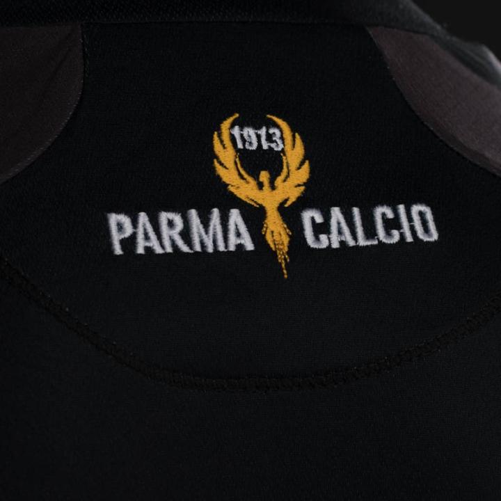 新赛季帕尔马第二客场球衣则拥有一个低调与大胆并存的设计。以黑色为基调的球衣让人不禁想到从灰烬中重生的凤凰,球衣正中加入源自球队队徽的黄蓝两色十字架图案,给人以强烈的视觉冲击力。
