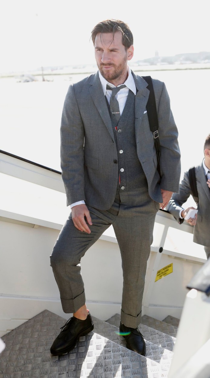 当巴萨球员们穿上一身帅气西装,当梅西再次挽起裤脚......Searlas @懂球帝2018-10-05 08:53近日,GQ为巴萨一些球员拍摄了一组西装照片,这套西装是汤姆-布朗(Thom Browne)的品牌,价值4200英镑(约合3.7万人民币),这也是巴萨之前飞往伦敦时统一穿着的西装。除了梅西之外,队内的颜值担当拉基蒂奇、德尼斯-苏亚雷斯等人也都参加了这次拍摄。等等...下面好几位胡子拉碴的大叔是乱入的吗...这次梅老板又挽裤脚了(下面是之前登机时的照片)。展开更多