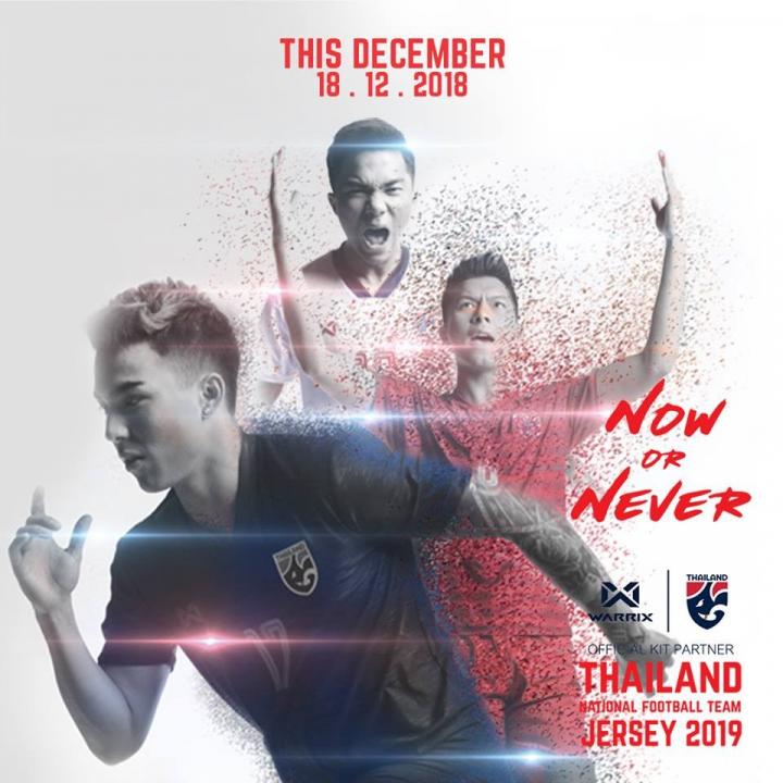 ENJOYZ足球在“Now or Never”口号的引领下,泰国足协与本土运动品牌Warrix Sports在曼谷共同揭晓泰国国家队2019亚洲杯主客场及第二客场球衣。